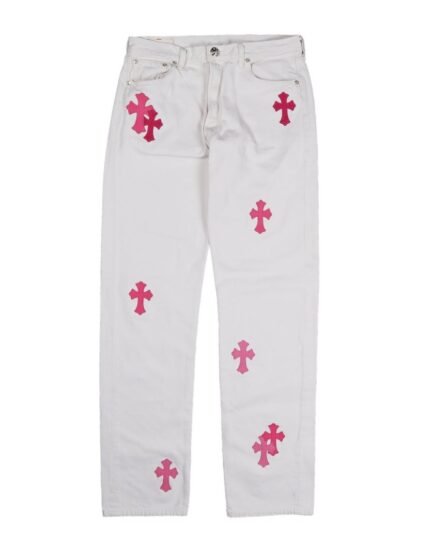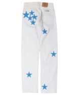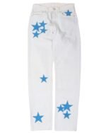 • White with blue star patches: These jeans feature a bright white color with blue star patches on the legs.
