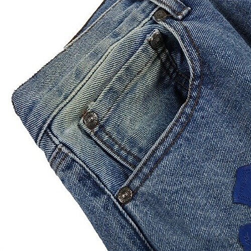 - Signature Branding: Many pairs include Chrome Hearts branding, either through patches, embroidery, or unique labeling, ensuring authenticity and style.